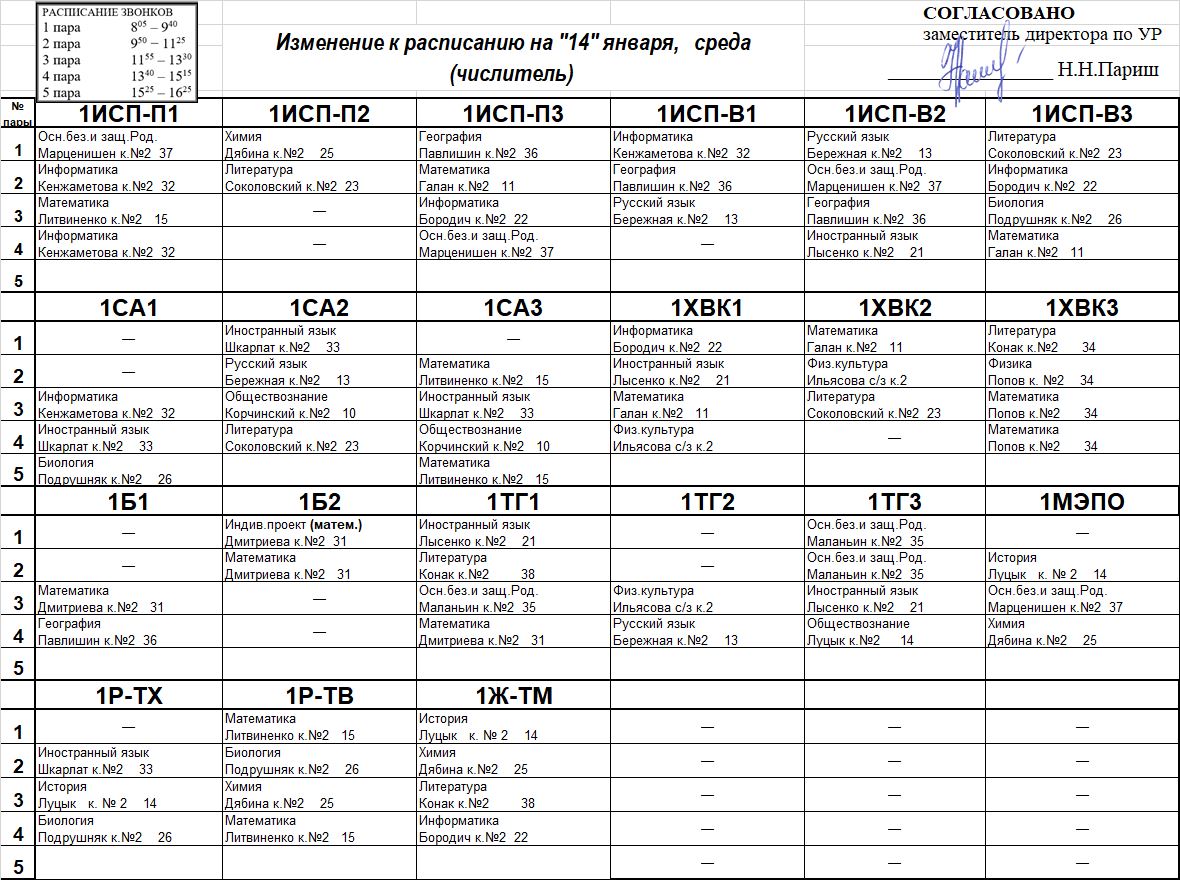 ВНЕСЕНЫ ИЗМЕНЕНИЯ В РАСПИСАНИЕ ЗВОНКОВ И ПРОДОЛЖИТЕЛЬНОСТИ ПЕРЕМЕН!